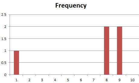 at the first class, which is for values ranging from 1 to 10, a note that we